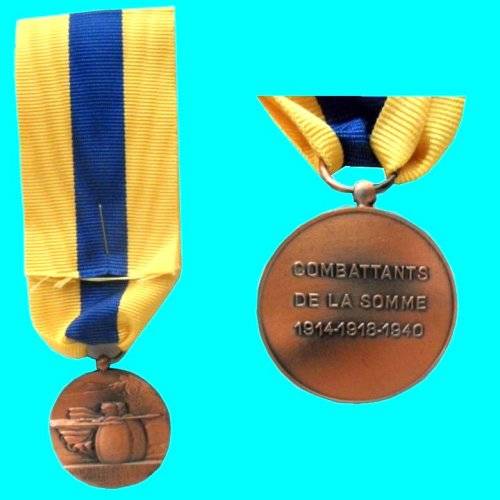 Combattants De La Somme Medal with Ribbon - France 1914-1918-1940.