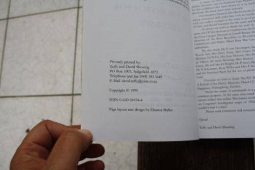 Over the past twenty years Taffy Shearing and her husband David have travelled all over the Cape searching for memories of the Anglo-Boer War and botanical specimens. The results were Taffy's 1989 MA (Hons) thesis, 'The Second Invasion of the Cape Colony during the Second Anglo-Boer War, 1901-02' and Davids 'Karoo, Wild Flower Guide No.6' which was published by the Botanical Society.