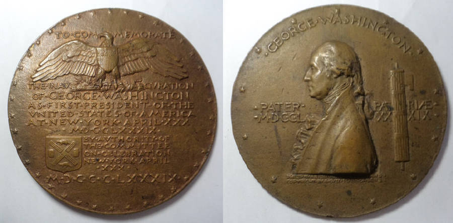“This medal was Saint Gaudens's first official medallic commission, from the Committee on Art and Exhibition of the Washington Centennial Celebration. The medal was to be the official souvenir for the centennial of George Washington's swearing-in as first president of the United States on April 30, 1789 at New York's Federal Hall”.