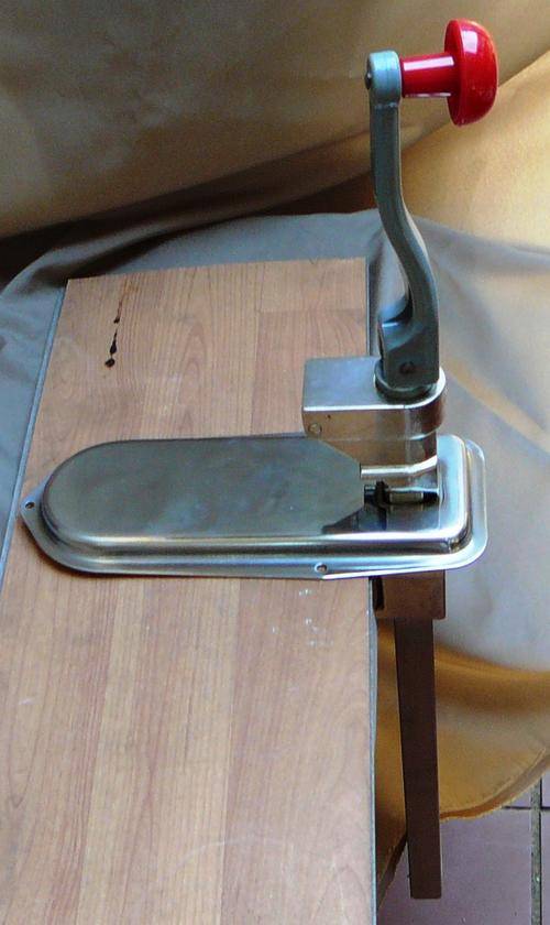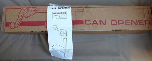 This Heavy Duty Can opener is in its original box and appears to be unused. It is 500 mm long and the base plate is 250 mm x 110 mm. It is complete with instructions and fixing screws.