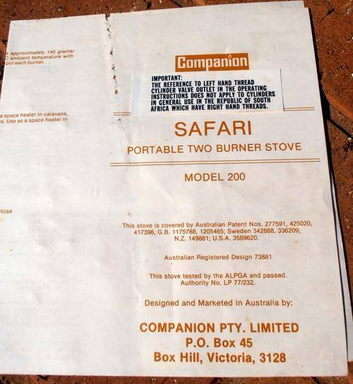 Up for auction is this Companion Safari 200 2-burner gas stove. This is really solid Australian quality from the mid-80's, it is in very nice, clean condition, it has been used, but not much and has been stowed away for 25 years. There are hardly any scratches, there are some small rusty patches, the chrome parts are shiny like on the very first day, just shows that quality stands the test of time. I tried to test it but the adaptor is too small for my 9kg gas bottle. It comes with its original box, a toaster grid and barbecue plate as shown on the box and the original instruction manual.