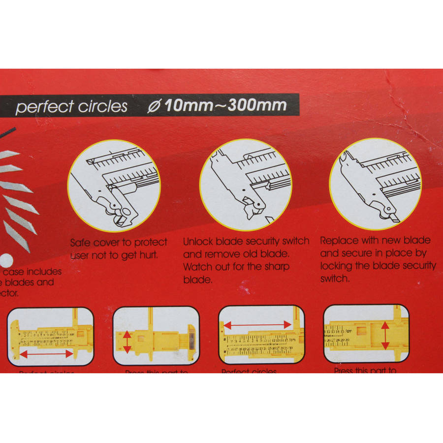 Description: Compass Knife Compass Circle Cutter Diameter Arch Cutter Knife Includes 6 Spare Blades