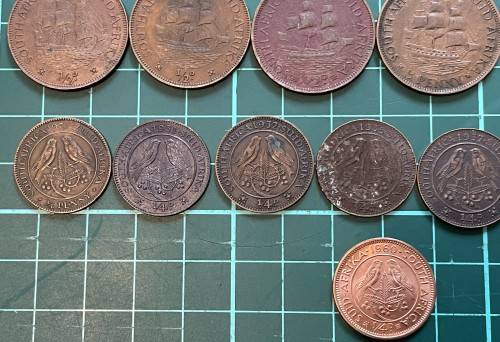 Complete collection of SA Union copper coins from 1923 to 1960.