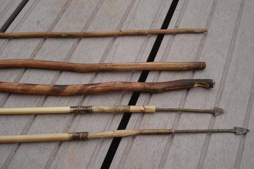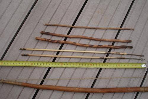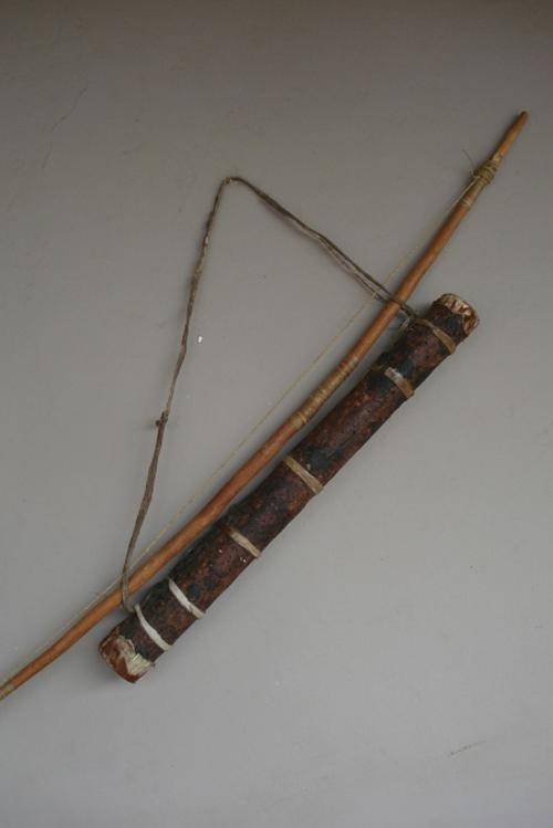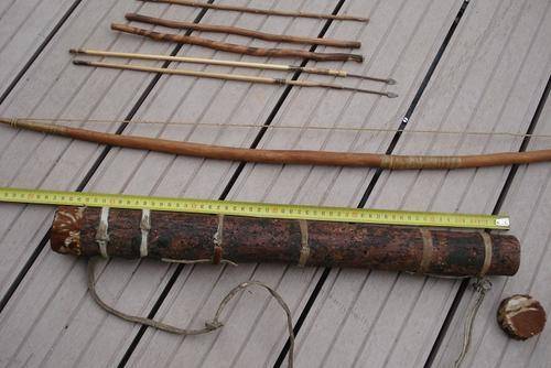 Total of 7 items in this Lot.........A Complete Genuine Bushman's arrow and quiver set with digging tool , fire lighting sticks and 2 genuine arrows a wonderful set not often seen as complete from Quiver probably made From the Combretun tree or the Commiphora sp. of The Kalahari region , South Africa