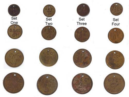 Set Four: the most recent set of "In Goods" issued in the early 1900s, the most common the S&Co pieces.