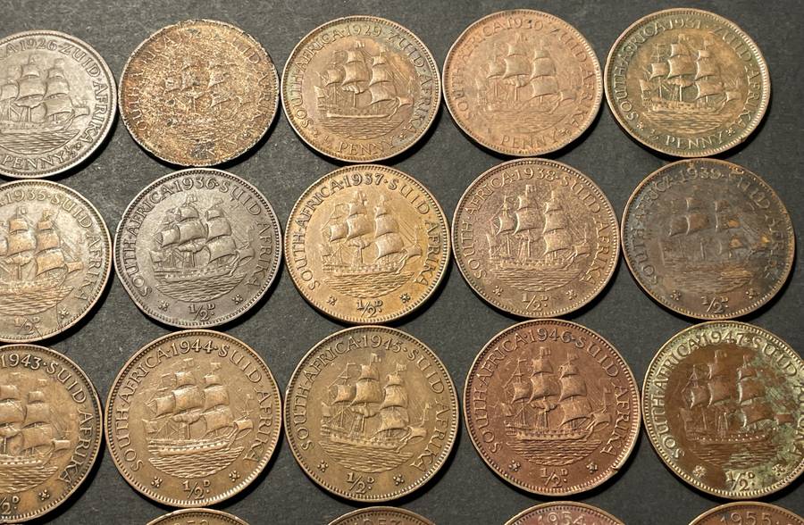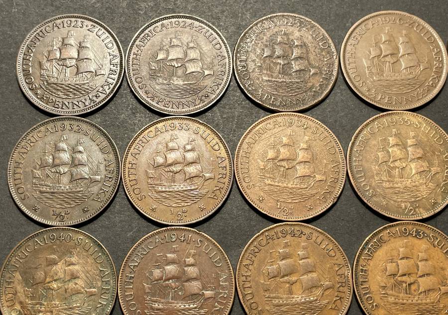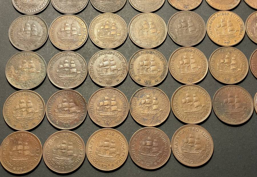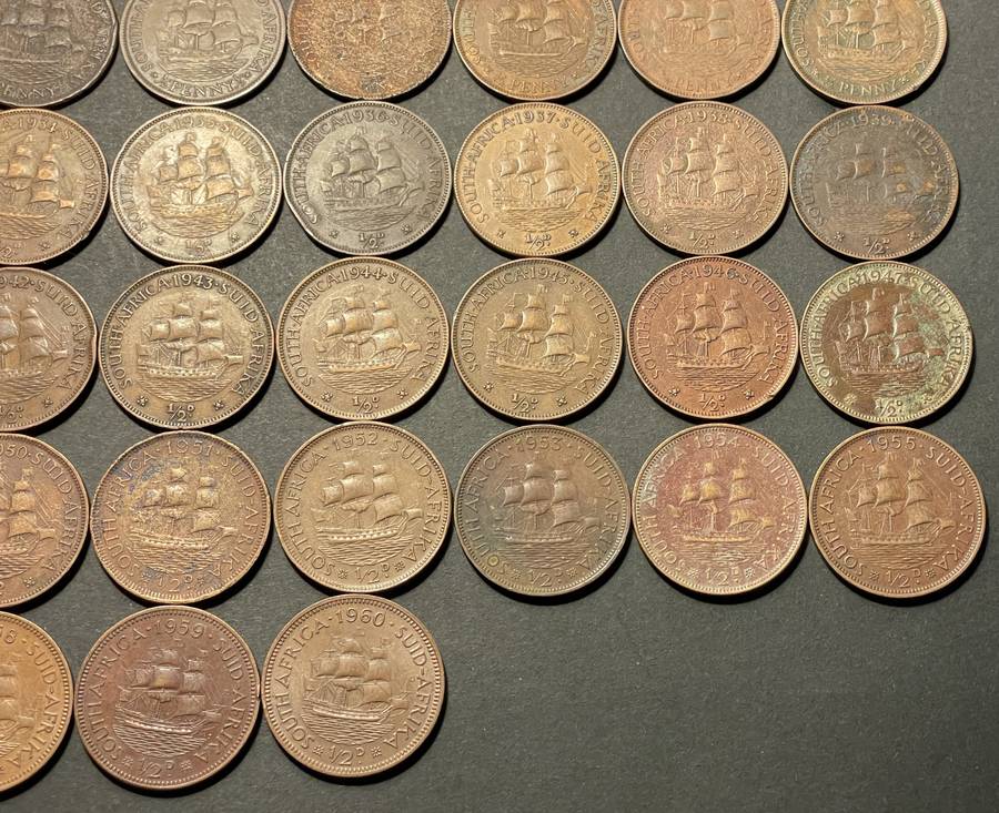 Complete set of SA Union ½ penny coins from 1923 to 1960 - Some are in a very good condition