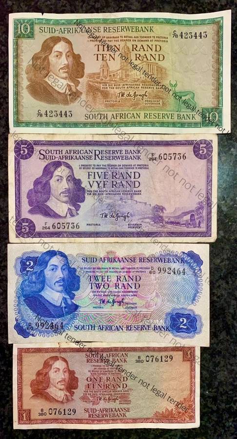 COMPLETE SET OF TW DE JONGH & DECIMALS R10 TO R1 -- 1967-1975( 1 BID TAKES ALL) COMPLETE SET OF TW DE JONGH & DECIMALS R10 TO R1 -- 1967-1975( 1 BID TAKES ALL)