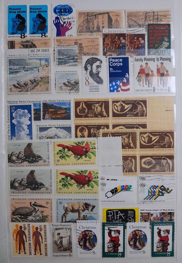 Comprehensive USA Stamp Collection, 1870 to 1985, Over 2100 Stamps & Stamp Blocks, America