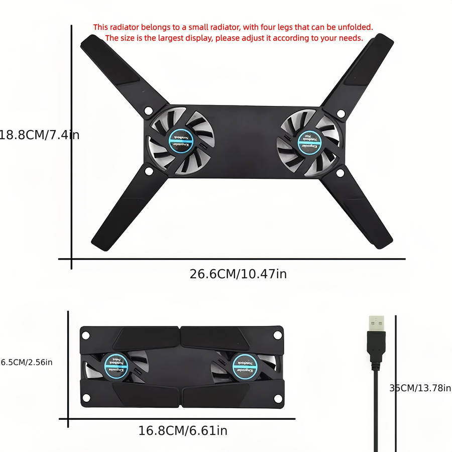 2.Powerful Cooling Performance: Equipped with two 6cm fans, this foldable cooler pad generates a significant airflow, effectively aiding in the cooling of your laptop. It efficiently dissipates heat, ensuring optimal performance and preventing overheating issues.