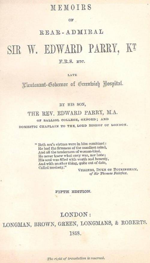 Memoirs Of Rear-Admiral Sir W. Edward Parry - By His Son, The Rev. Edward Parry
