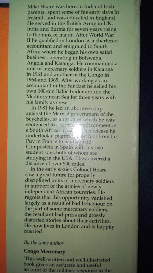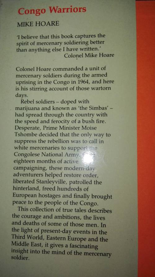 CONGO WARRIORS ; MIKE HOARE ; Hardcover ; Published by Robert Hale London ; First published in Great Britain 1991 ; ISBN 0 7090 4369 4 ; No. of Pages ; 191 including the Index .