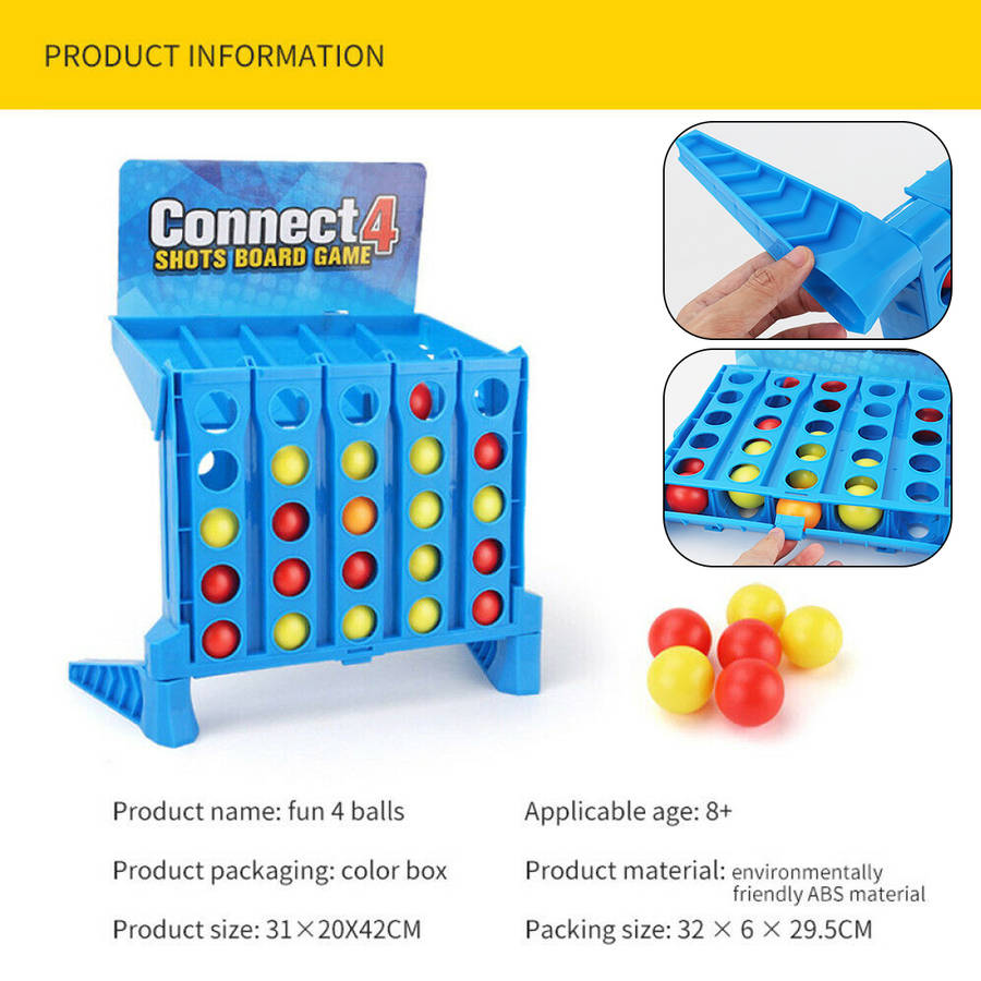 a Easy To Install: The connect 4-shot toy is easy to install, no need of complex process and other tools requirement, which can be finished the installation process by the children self. a Safe Material: The connect 4-shot toy is made of high quality ABS material, eco-friendly, safe and reliable to use for your children. a Portable: The connect 4-shot toy can be folded into smaller size. Besides, it also has a carrying handle, which is very convenient to carry out. a Improve The Relationship Between Parents And Children: The connect 4-shot toy needs two players to enjoy the game, which generate the chance for improving the relationship between parents and children. a Scope Of Application: The connect 4-shot toy is perfect for Christmas gift, parent, children, family, kindergarten and so on.