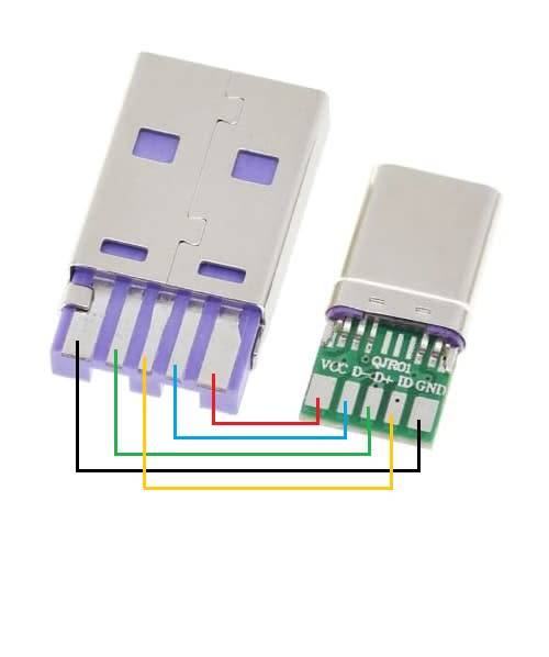 DIY Kit - Fast Charge Type-C USB 65W 5A Male Connector + Type A Male USB DIY OTG Data Charge DIY KIT