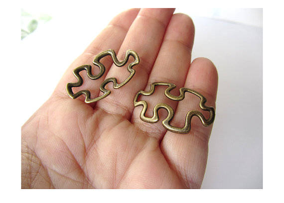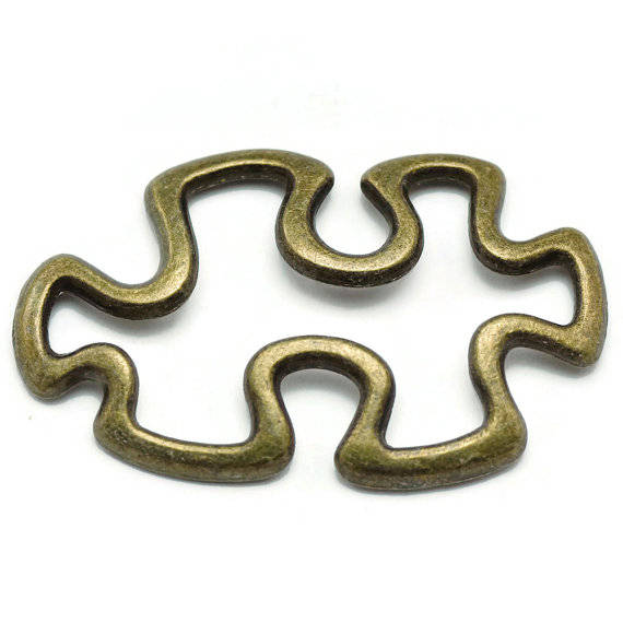CONNECTORS - AUTISM AWARENESS - PUZZLE PIECE - ANTIQUE BRONZE - HOLLOW - 42x25mm