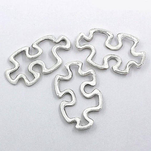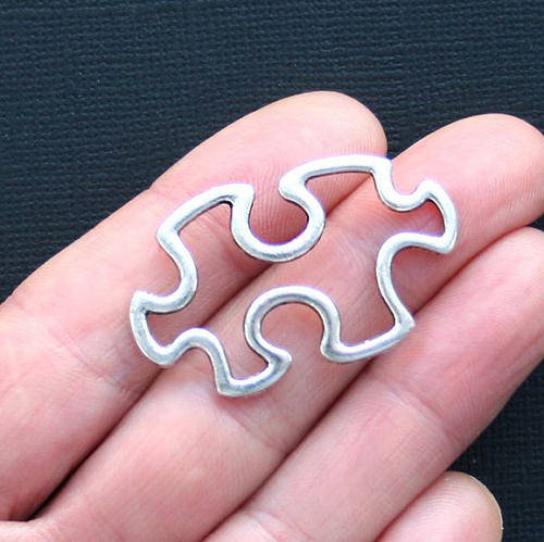 CONNECTORS - AUTISM AWARENESS - PUZZLE PIECE - ANTIQUE SILVER - HOLLOW - 42x25mm