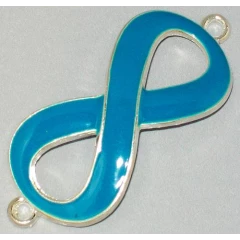 CONNECTORS - INFINITY- ENAMEL - TURQUOISE BLUE - SILVER TONE - PLATED 13x29mm