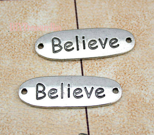 CONNECTORS - SILVER TONE - "BELIEVE" - 12x35mm