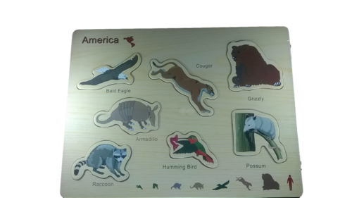 These wooden puzzles help your child know the names of animals and where they live as well as gain sense of size and shape. it also helps with hand/eye co-ordinaton With pictures inside the jigsaw even children who are not yet able to name the animals can get clues on where to fit part of the jigsaw. Suitable for children 2+.