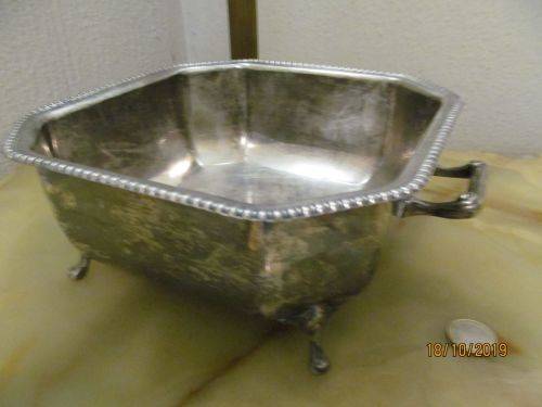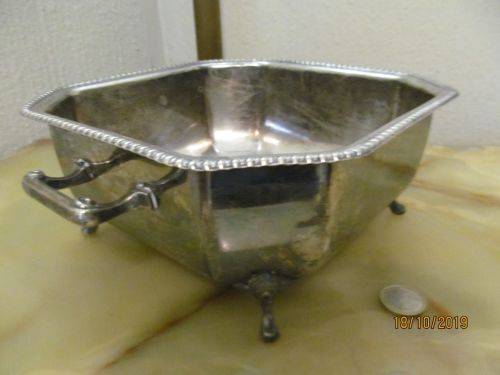 VINTAGE 1920 - 1950 SILVER PLATED OCTAGON SHAPED FOOTED CONTINENTAL EUROPEAN DISPLAY BOWL WITH HANDLES