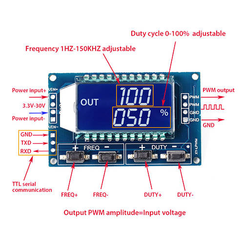 Controller Duty Cycle Frequency PWM Digital Display (1HZ-150kHZ):