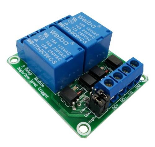 2 channel relay module 5V, high and low level trigger relay control with optocoupler for PLC automation equipment control.