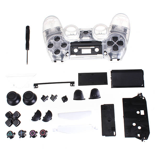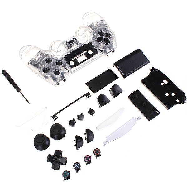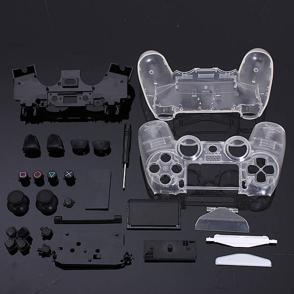 Controller Shell Full Housing for PS4 Playstation 4 Dualshock 1. Compatible with Dualshock PS4 controller. 2. With this complete controller shell set and tools you can easily renew your controller or modify to your favorite color. Package Includes: 1 x Upper Shell 1 x Upper Case 1 x Lower Case 1 x Guide Button 1 x Share Button 1 x Options Button 1 x Action Button Set 1 x D-pad Button 1 x Touch Pad Cover 1 x Home Button 1 x R1 Button 1 x L1 Button 1 x R2 Button 1 x L2 Button 2 x Analog Thumbsticks 1 x Phillips Screwdriver
