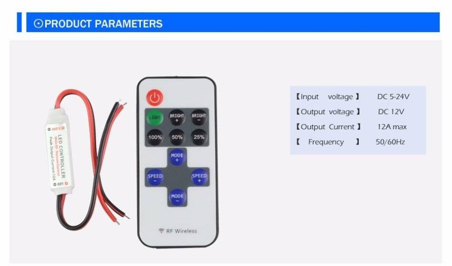 Radio Frequency (RF) signal between the remote and controller can operate through walls/ceilings and as far as 10-15 meters away. **Please note: Do not short circuit the LED output as this will lead to permanent damage.**