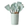 Cooking Utensil Set 11 Piece with Holder - Green - Silicone Cooking Utensil Set: 100% food-grade Silicone Cooking Utensils, 12pcs Silicone kitchen utensils set including soup spoon, slotted spoon, turner, Slotted Turner, brush, Tongs, Whisk, Spatula, pasta server, spoon, Turner, storage box, 2pcs free hook, our kitchen utensil set can meet all your cooking and baking needs.