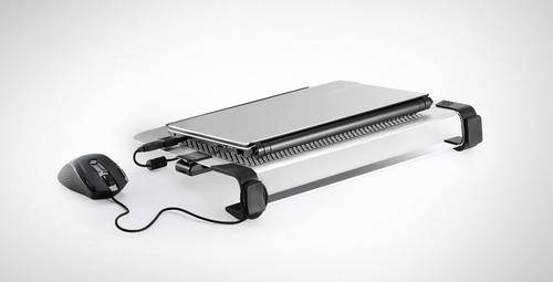 Coolermaster R9-NBC-U3PS-GP Notepal U3 Plus Silver or Black , upto 19" stand/passive cooler , meshed aluminum surface , with 3x 80mm clip-on fans ( detachable + 950-1800rpm adjustable + position adjustable ) , 3 fans powered by 1 usb , U-shape design provide storage and protection for the notebook - work as Notebook carry case , 46CFM , 21-23dBA , 435x333x76mm