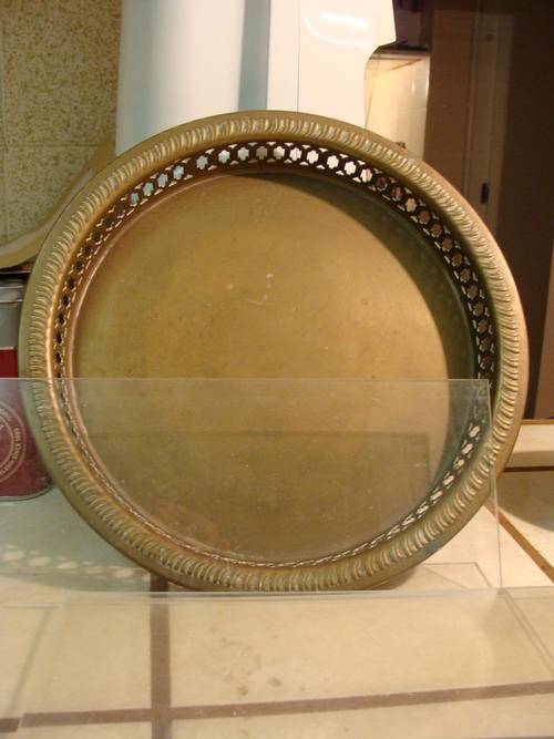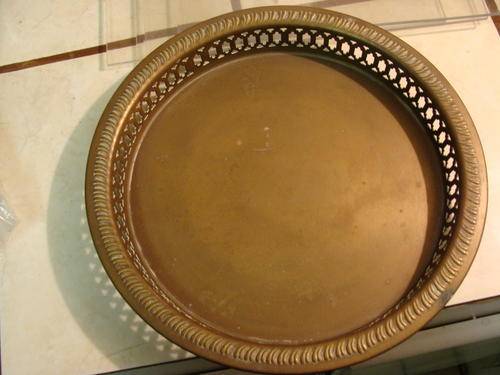 THIS IS A NICE DECORATIVE BRASS SHEET TRAY AND WILL CLEAN UP VERY VERY PRETTY-WHEN NOT IN USE GREAT TO HANG ON WALL- ORNAMENTAL INTRICATE DESIGN TRAY-OTHER ITEMS NOT INCLUDED BUTLISTED GO SEE