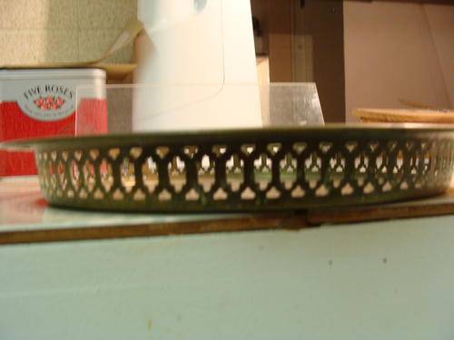 APPROXIMATE SIZE 26CM DIAMETER BEAUTIFUL CIRCULAR BRASS SHEET TRAY WITH CUT OUT PATTERN