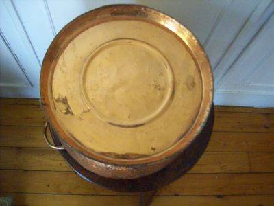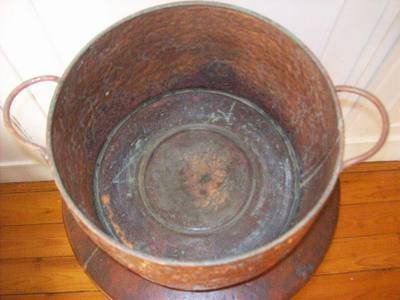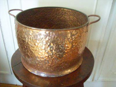 Lovely copper pot plant holder, well made looks like it was hand beaten & in good condition measures 190mm high & 280mm dia.