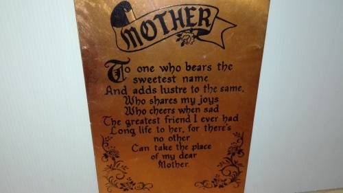 Copper Wall Hanging - `Mother`. size: 27cm x 15cm