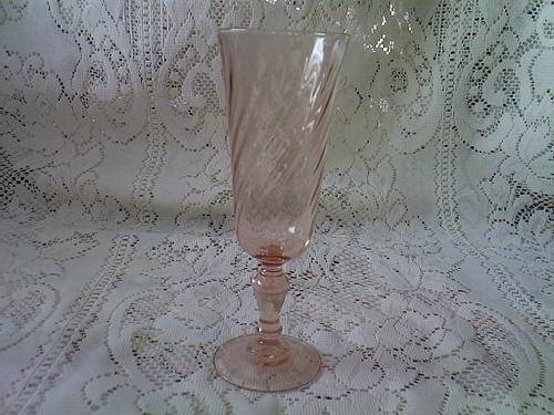 Here we have 9 coral pink flute champagne Depression glasses, all in perfect condition. Measures 16cm in height, with a diameter of 6cm, measured on the rim.