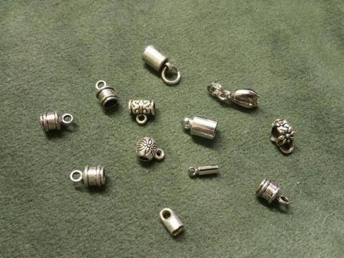Cord ends / 3-4mm cord end  caps and diverse pices anique silver color  price 12pcs/ for crafting