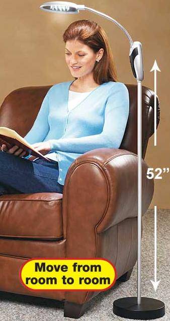 Cordless Anywhere Reading Lamp No outlet, no problem! No cords, no tripping hazard, the super lightweight cordless reading lamp goes wherever you go, making paperwork, reading and crafts a breeze! Sixteen energy saving, super bright LED's shed light to prevent strain. Requires six AA batteries, not included. No more dangerous cords to trip over or tangle! Take this super-lightweight reading lamp easily from room to room, wherever you need more light for reading, crafts and more!