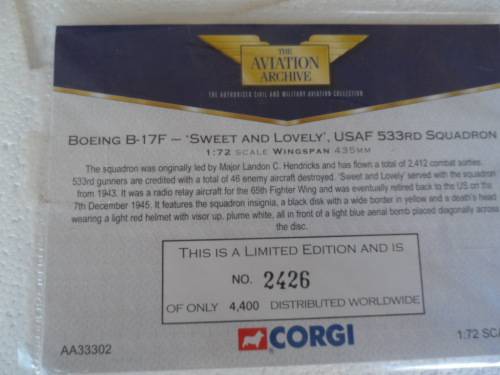 BOXED, COMPLETE MINT WITH CERTIFICATE. 'SWEET AND LOVELY' NOSE ART