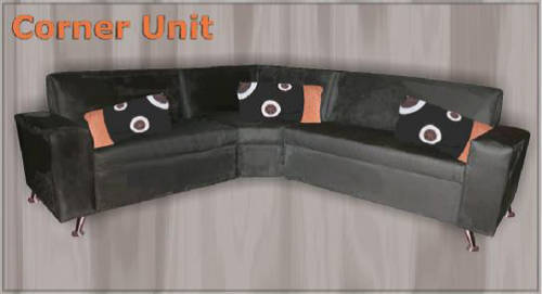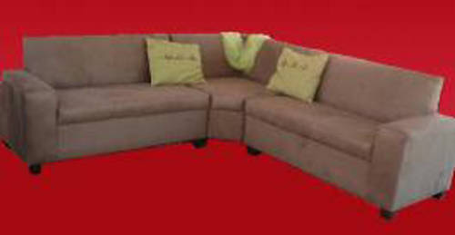 3 Piece Corner Lounge Suite (5 Seater) manufactured in Baked Suede Material with Chromed or Wooden Feet