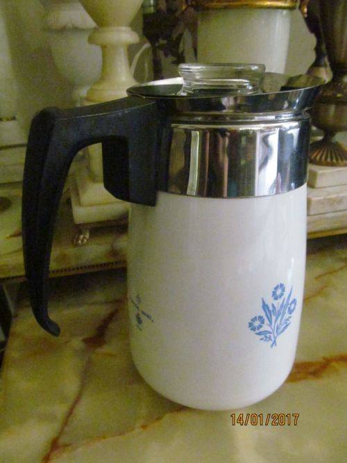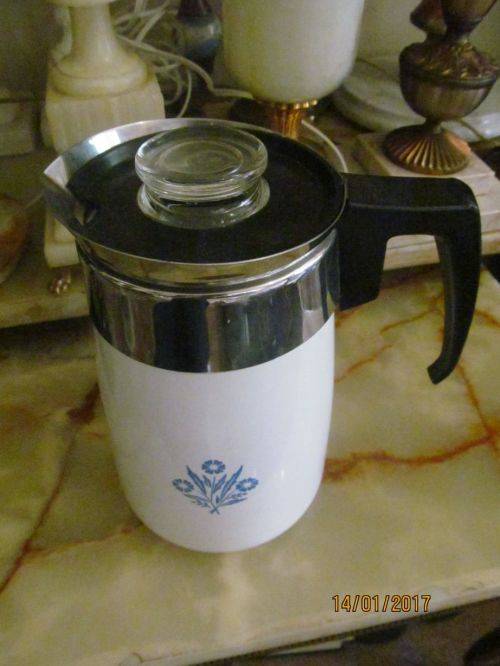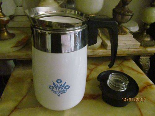 RARE VINTAGE (60's - 70's) ENAMELWARE CORNFLOWER COFFEE PERCOLATOR (STOVE TOP) - CORNINGWARE