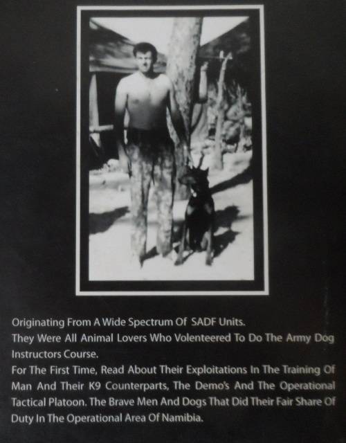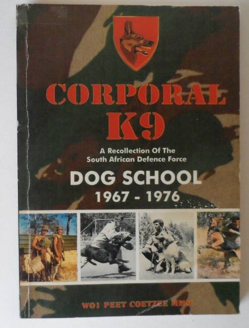 A recollection of the SADF's Dog School 1967 to 1976, softcover, A5 type size, 201 pages, well illustrated, autographed, water mark on inside cover, see image and some slight other marks.