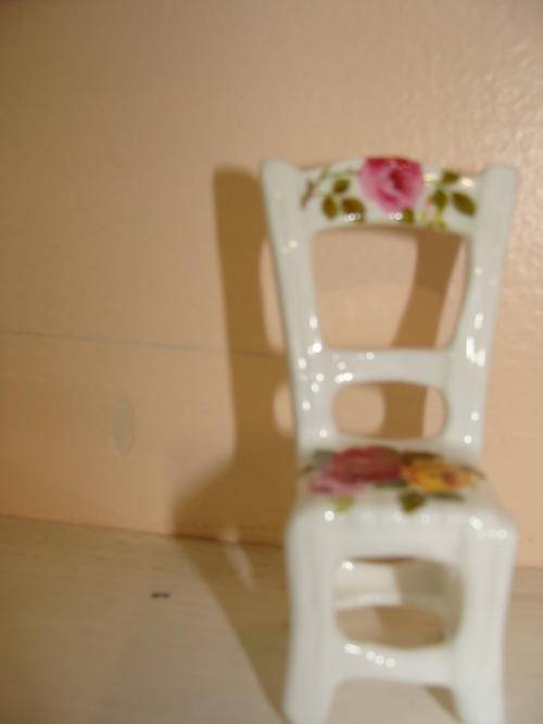THIS FINE BONE CHINA- PATTERN COTTAGE ROSE -MINIATURE ORNAMENTAL little CHAIR IS white and decorated With Gold Trim VERY VERY SWEET!!!!!!! -NO CHIPS