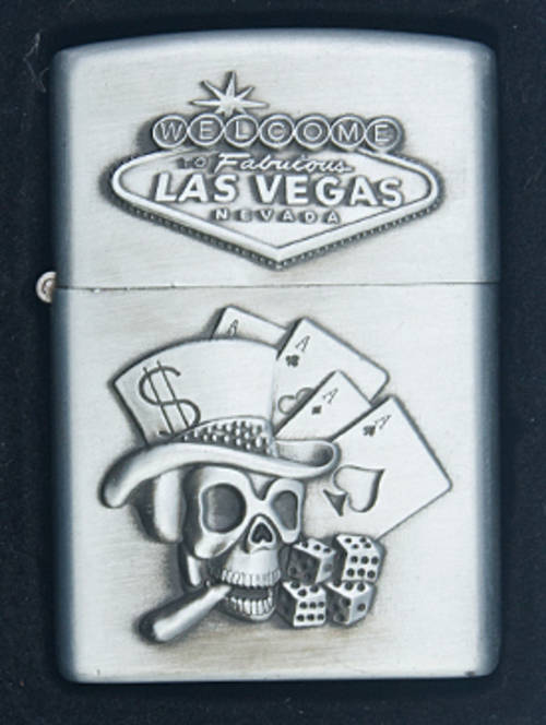 Cotton Oil Zippo Type - Las Vegas Nevada - Smoking Skull