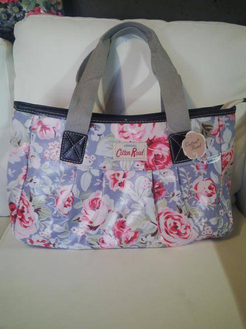 LOVELY LIGHT BLUE WITH PINK ROSES HANDBAG