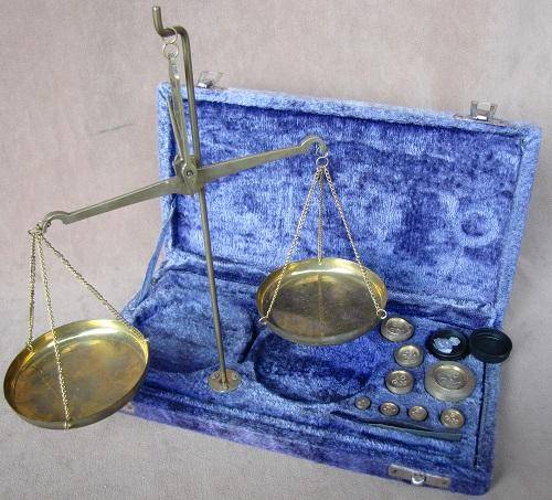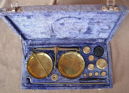 This is a small balance scale complete in its own case with all weights, tweezers and scale. The weights allow for weighing small items up to 100 grams. The base of the case is used as the base for the scale, as can be seen in the pictures. Very nice set at a great price. Not recommended for precision weighing.