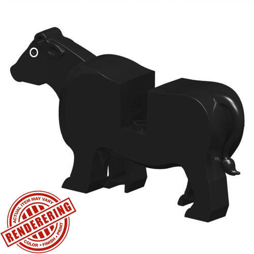 Originally hailing from Scotland the black Angus Cow is a popular beef breed of cattle. No farm should be without a few of these bovines strolling about the barnyard or grazing along the countryside. The Angus Cow features a 2-stud wide design, articulated head, 1x2 cut-out and custom screen print design reminiscent of the traditional Horse piece. Add an Udder for a splash of realism or a set of Horns to turn Bessie into Brutus.