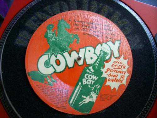 This beautiful 1950's, 78 rpm advertising the Cowboy Ginger Beer - "Die Beste Gemmer Te Wereld" - an all star recording by the Singing Cowboy & his Band !! - stunning for a bar, or framed ... never played - near MINT !!