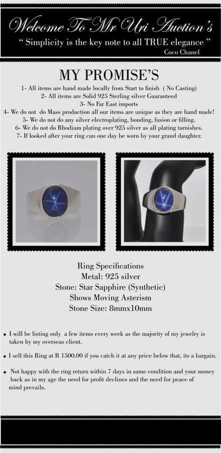 Cr. Star Sapphire , Solid 925 Silver, Ring Size 8,5