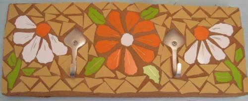 Mosaic Daisy insert. Made with Ceramic tile. This key rack is an EXAMPLE of what you can do with your daisy!