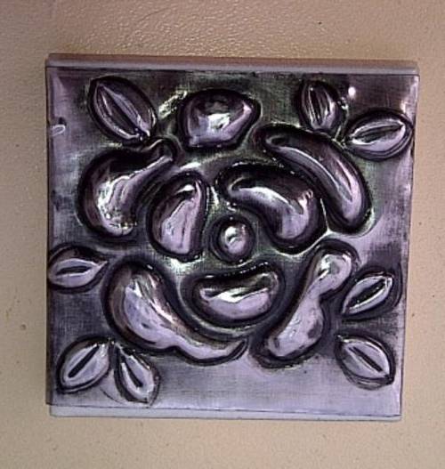 Pewter picture set on ceramic tile approx 5cm x 5cm