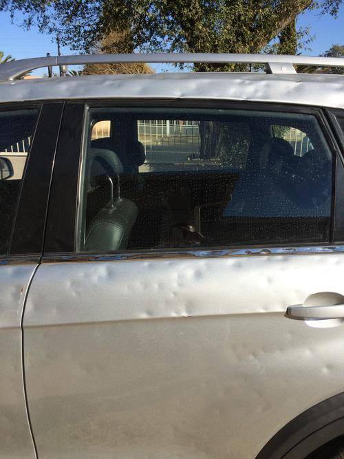 AS YOU CAN SEE THE CAR HAS HAIL DAMAGE ON ROOF AND ENTIRE LEFT SIDE